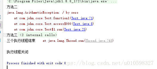 方法一抛出异常,但是没有做异常处理导致不会执行线程关闭步骤,是不是和想象中不一样,一开始我也是懵,看了一下CountDownLatch原理就很好理解了,
